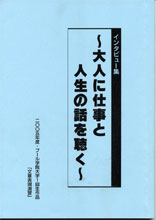 インタビュー集 ~大人に仕事と人生の話しを聴く~ 2005年度 プール学院大学1回生作品 「文章表現演習」 サイズ:A4版 まだ少し在庫がありますので、ご希望の方には実費のみでお分けいたします。 注文はこちらから |