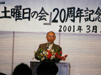 Dさんの初著書『車椅子のジョージ』(リトル・ガリヴァー社)出版記念会に出席しお祝いの言葉をのべる